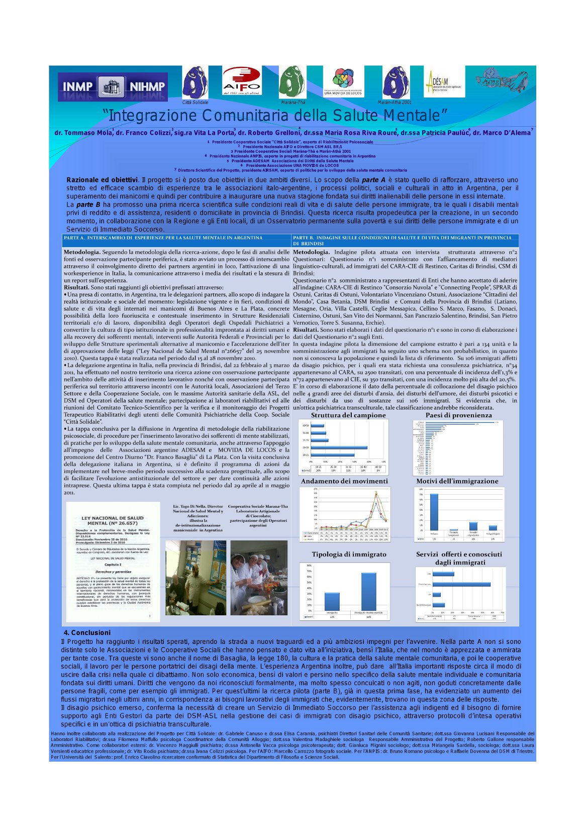 Lunedì 11 ottobre u.s., presso l’aula “De Benedictis” della Facoltà di Medicina e Chirurgia dell’Università degli Studi di Bari, ha avuto luogo il convegno organizzato dall’INMP “La Sfida della salute per tutti: i progetti INMP in Puglia”. Durante i lavori sono stati presentati i 13 progetti, fra cui quello sviluppato da Città Solidale, Aifo, Marana-Tha, Maran-Atha 2001, Una Movida de Locos, Adesam e A.N.P.I.S., dal tema “Integrazione Comunitaria della Salute Mentale”.